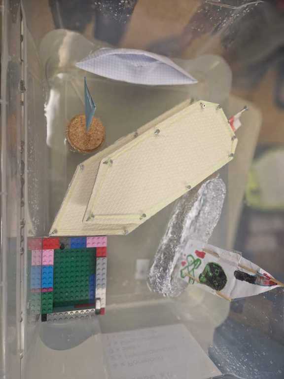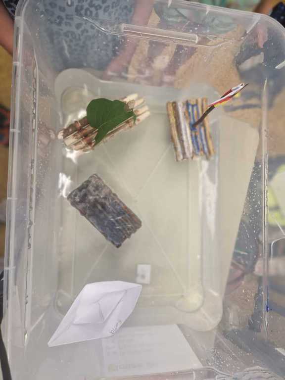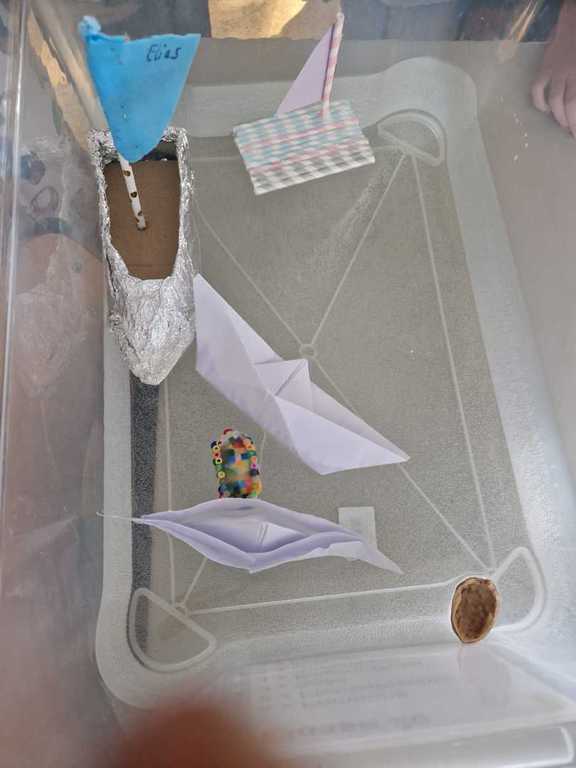 Wir, die Kinder der Klasse 2c, haben heute ausprobiert, welche Boote schwimmen und warum. Auf den Fotos seht ihr unsere Ergebnisse. Wir haben Boote aus Alltagsmaterialien gebaut und sie aufs Wasser gesetzt. Schaut mal...