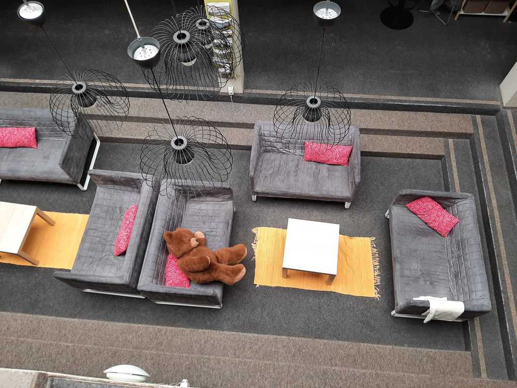 auf das gemütliche Atrium im Erdgeschoss. Da wohnen übrigens wir.