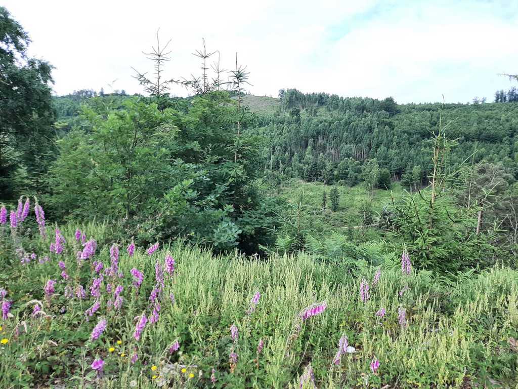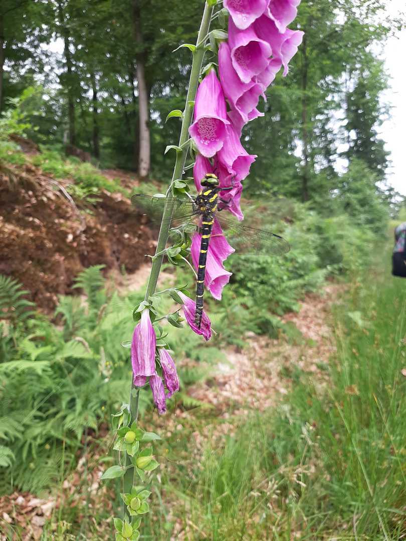 Der Aufstieg ist ganz schön steil und es geht mitten durch den Wald. Schließlich wollen wir zum Mittagessen da sein. Auf dem Weg begegnet uns eine tolle pinke Pflanze: Fingerhut. Wunderschön aber extrem giftig! Das wissen wir jetzt alle!